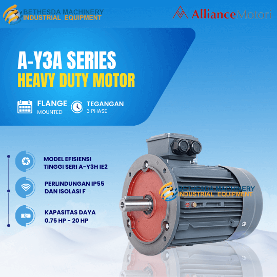Alliance heavy duty series sebagai jenis dinamo motor listrik khusus untuk penggunaan dalam kondisi kerja berat (heavy duty) dan lingkungan yang menuntut performa tinggi serta ketahanan luar biasa. Dinamo Alliance model A-Y3H dengan kode perlindungan IP55 agar tetap aman digunakan di lingkungan berdebu.